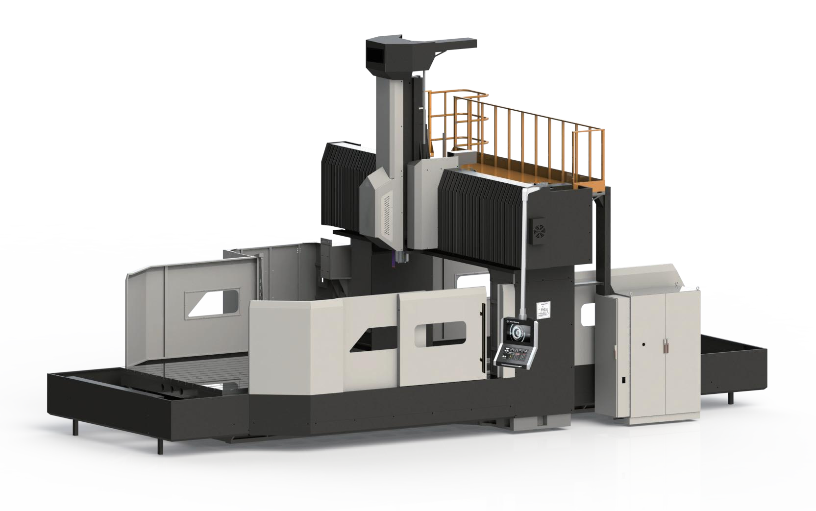 • Movable worktable design with fixed column and crossbeam; the X and Y axes are linear guide rails